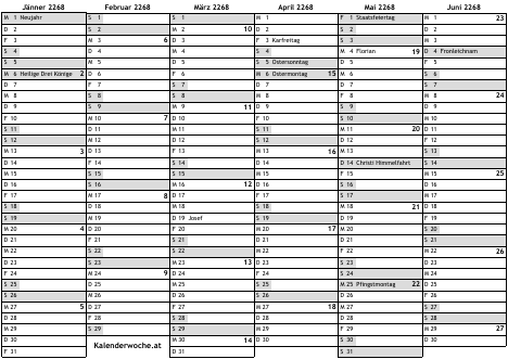 Kalender 2268