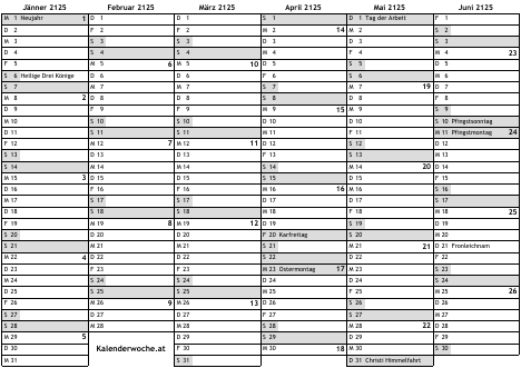 Kalender 2125