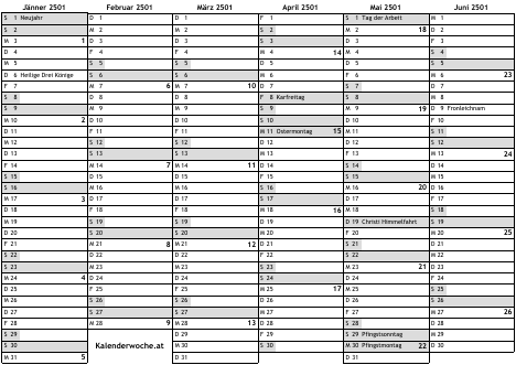 Kalender 2501